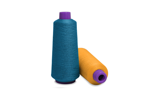 A 100% post-consumer recycled high bulk textured filament thread with unique seam coverage properties and extension.